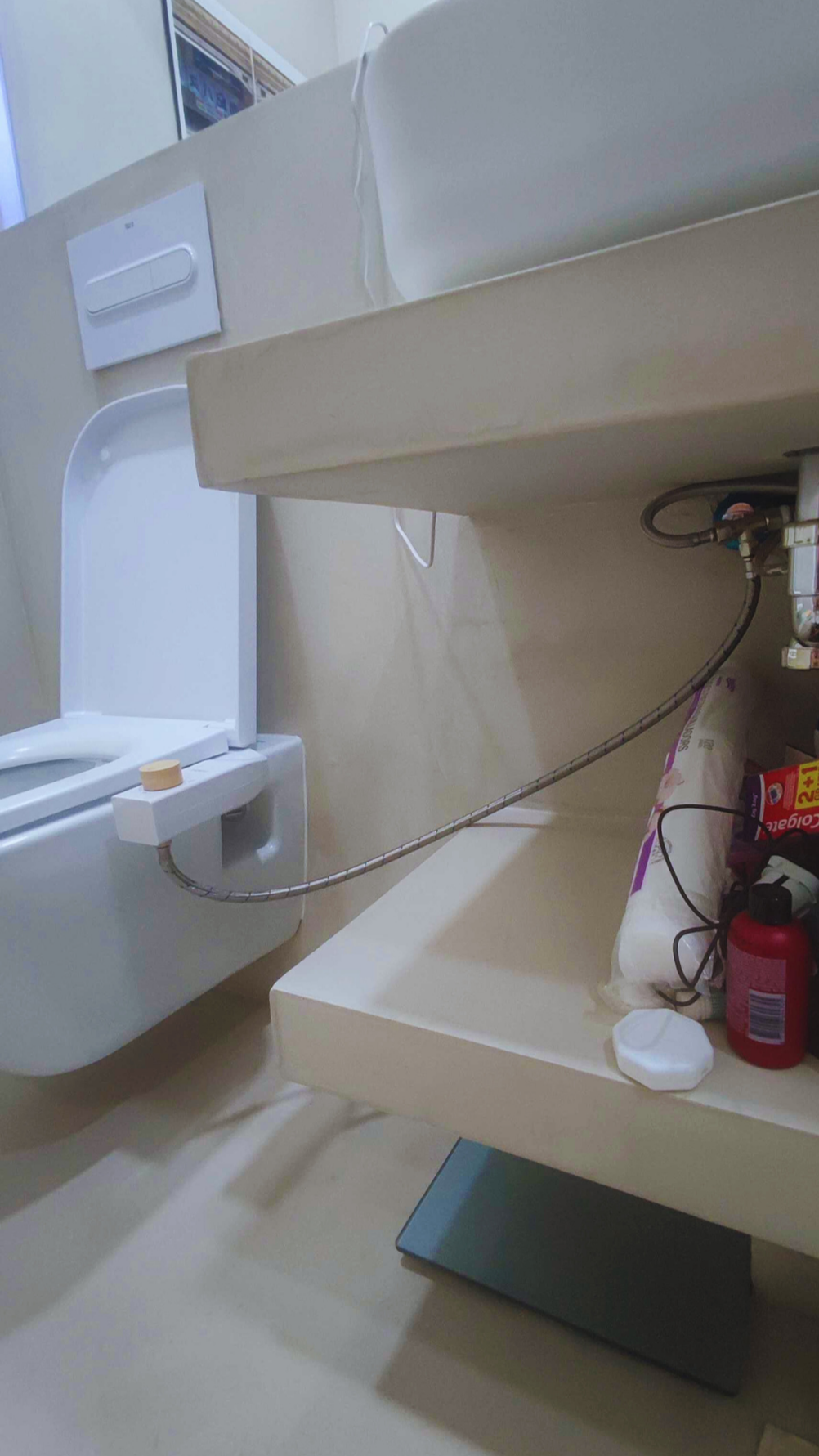 ¿No tienes una toma de agua libre en el inodoro? El bidet también se puede conectar a la toma de agua de tu lavabo.