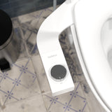 Este bidet integrable, de diseño ultra-delgado, se instala discretamente debajo de la tapa de tu váter. Su funcionamiento es intuitivo: a través de la perilla, liberas un chorro de agua a presión regulable para una limpieza precisa y profunda. Es la solución para que tengas una sensación de confianza y limpieza que el papel no puede igualar.